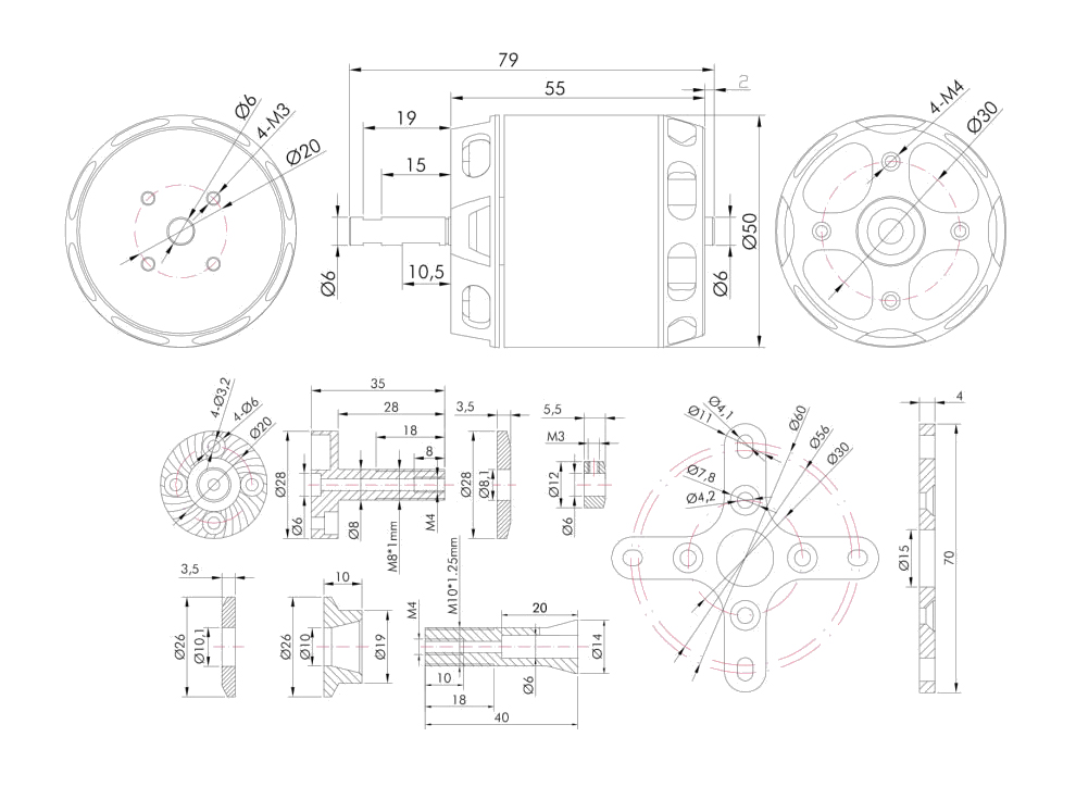 T Motor AT4130 3D Fixed Wing Airplane Long Shaft Brushless Motor